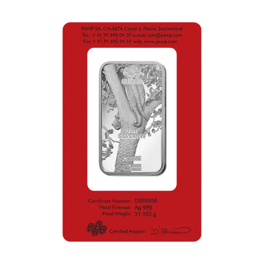 1 Unca (31,1 g) PAMP Lunárna Séria Rok Hada 2025 strieborná tehlička (Úschova)