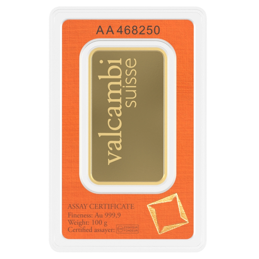 100g Valcambi Švajčiarsko Investičná zlatá tehlička (liata)