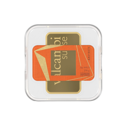 250g Valcambi Švajčiarsko Investičná zlatá tehlička (razená)