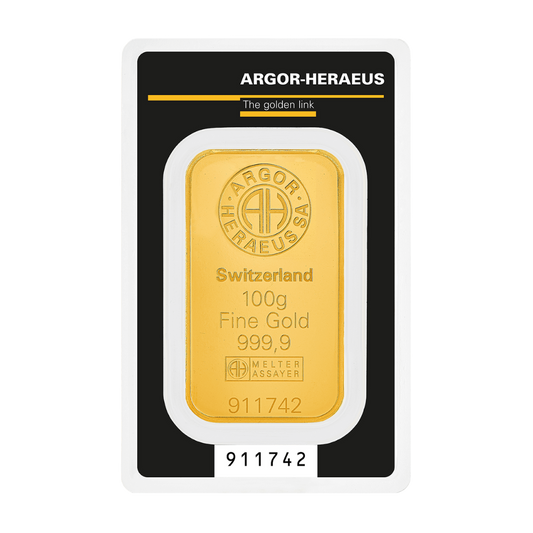100g Argor Heraeus SA Švajčiarsko Investičná zlatá tehlička