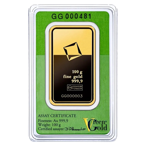 100g Valcambi Švajčiarsko Investičná zlatá tehlička (Green Gold)