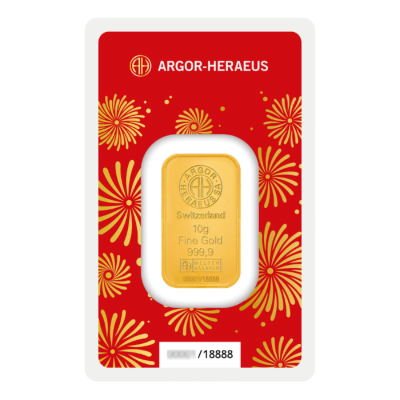 Lícna strana tehličky hrdo zobrazuje ikonické logo Argor-Heraeus. Dopĺňajú ho nápisy „Switzerland“, „10g“, „Fine Gold“, „999,9“ a jedinečné sériové číslo, ktoré garantuje jej najvyšší štandard kvality a pravosť.