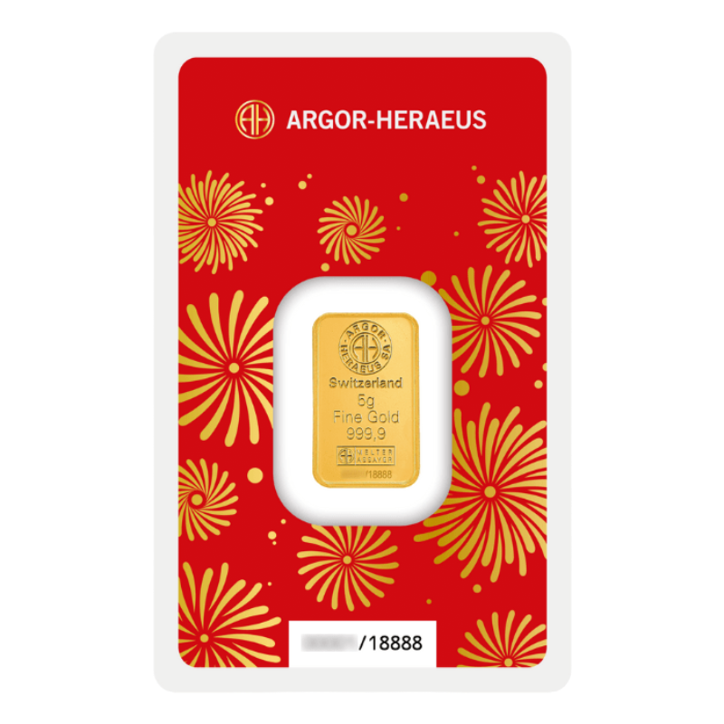 Lícna strana tehličky hrdo zobrazuje ikonické logo Argor-Heraeus. Dopĺňajú ho nápisy „Switzerland“, „5g“, „Fine Gold“, „999,9“ a jedinečné sériové číslo, ktoré garantuje jej najvyšší štandard kvality a pravosť.